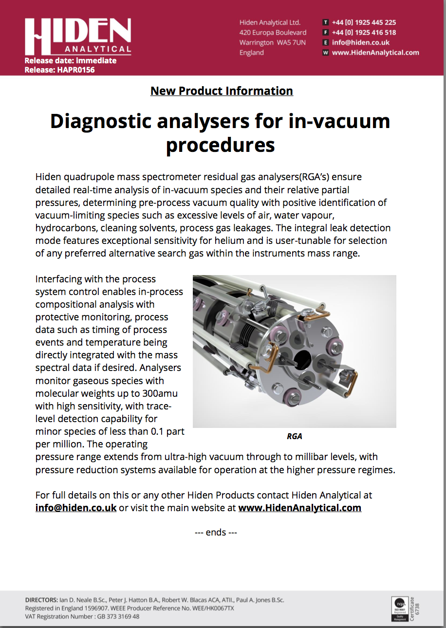 This month's newsletter is concluded with a reference to the Tech Topic in the current issue of Vacuum Technology & Coating, which features an article contributed by Gencoa on Vacuum Species Sensing using Remote Plasma Emission Spectroscopy.